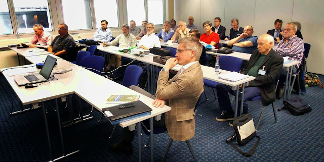 Dentro de los actos de la Feria Internacional del Sello de Essen y el propio Campeonato Europeo de Filatelia Temática, se llevó a cabo, bajo el patrocinio de FEPA un Seminario para Jurados tanto FIP como de los países europeos, a los que se añadieron los brasileños Silva-Soares y Rodrigues-Cunha. El lugar fue el sábado en el Messe Essen (Feria de Congresos) y el domingo en un hotel donde se alojaba la organización. Pudimos asistir y realmente mereció mucho la pena. Se trataba de analizar un valor importantísimo en una colección como es el estado y rareza de las piezas. Para ello, Damian Läge fue el encargado del seminario, al que el propio José Ramón Moreno (Presidente de FEPA) agradeció enormemente su labor docente en este aspecto, entregándole una placa por su colaboración.