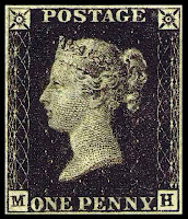 Penny Black o Penique negro (izquierda) fue el primer sello postal del mundo, emitido por el Reino Unido el 1 de mayo de 1840. En 1850 se emite el primer sello postal de España (derecha).