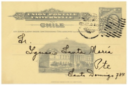Figura 45Las bellas tarjetas hechas por el Hotel Viña del Mar (fig.45) y que fueran usadas por el largo período de tiempo, es un ejemplo que tarjeta pre-impresas hecha para ser enviada en forma individual y como tarjeta postal normal, donde el diseño impreso deja suficiente espacio para poder escribir algún mensaje epistolar.