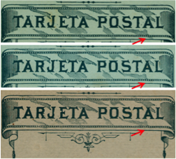 Entre los años 1887 y 1894 se encargan a la ABN Co. New York 6 pedidos adicionales de las tarjetas de 2 cts. fabricadas para uso nacional, 200.000 unidades el 05.04.1887, 50.000 unidades el 01.10.1888, 50.000 unidades el 03.05.1889, 200.000 unidades el 21.08.1890, 50.000 unidades el 12.08.1891, 100.000 unidades el 23.02.1892 y 200.000 unidades el 04.10.1894.Posiblemente en las tres últimas hayan aparecidos las tarjetas que tiene el "marco roto" (fig.42) como lo muestra la imagen de detalle.
