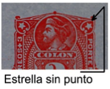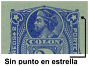 Figura 52El 21 de mayo de 1896 se realiza un segundo pedido por 100.000 tarjetas de las mismas. Esta segunda partida fue impresa con color azul ultramar sobre una cartulina de color celeste verdoso pálido (fig.51). En las dos partidas entregadas podremos encontrar ejemplares de tienen o no un punto en la estrella superior derecha del sello del entero postal (fig.52).