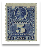 La utilización de la imagen de Colón en todas las piezas postales fue decretado en el ley de 12 de enero de 1858, "Art. 132. Para facilitar el franqueo previo de la correspondencia, el Director General de Correos, cuidará de emitir por ahora, tres clases de estampas de franqueo del valor de cinco, diez i veinte centavos. Todas ellas llevarán el busto de Colon, la inscripción, Correos-porte franco-Chile, y la designación del respectivo valor" (No habría sellos postales de 20 cts. hasta el año 1862).