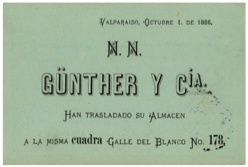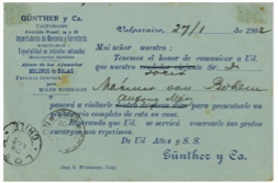 En estas tarjetas también encontraremos ejemplares pre-impreso, algunos con fácil explicación dado que se basaron en un entendimiento cabal de la normativa de Correos, ejemplo de ellos es la tarjeta de la empresa Günther y Cía., que pre-imprimió tarjetas de 1 ctvo. (fig.29) y 2 cts. (fig.30) con el mismo comunicado de traslado de su negocio en Valparaíso en octubre de 1886. Las tarjetas de un centavo serían válida de uso cuando despachara sobre 20 tarjetas a la vez, y para envíos menores estaría obligado a cancelar 2 cts.