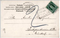 Figura 19La fig.20 es un ejemplar de tarjeta de 1897, que si bien el texto es muy pequeño, el mismo es una comunicación particular, está escrito a mano y no se despacharon 20 tarjetas iguales, por lo que fue multada con 2 cts., doble del faltante centavo para circular como tarjeta postal.
