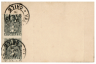 Los siguientes son dos ejemplos de tarjetas de Saludo de Año Nuevo de 1879, en la fig. 10 se aceptó la tarifa rebajada de 1 centavo y en la fig11 no se aceptó como tal y se cobró el valor de 2 cts. para tarjeta nacional, seguramente, en el segundo caso no se entregaron en el Correo en mínimo de 20 unidades exigidas.