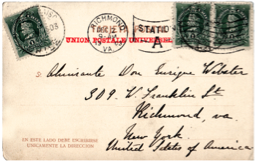 Las tarjetas de la fig. 122 son ejemplos de correctos usos de la tarifa postal de un centavo entre 1910 y el 22.01.1912.