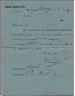 Figura 130Ejemplo de la fig. 129 es una tarjeta pre-impresa usada por el Tercer Juzgado Civil de Valparaíso el 18 de mayo de 1919 para el envío de notificaciones certificadas usando adecuadamente la tarifa de envío de material impreso más 10 cts. de certificación.