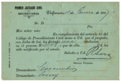 Luego del cambio de tarifas los Tribunales de Justicia siguieron usando las tarjetas enteros postales con respuesta pagada de 6 cts. + 6 cts. sobrecargadas en 1909 (fig.126), para el envío certificado de sus resoluciones judiciales, haciendo un uso del entero postal como un todo, y dándole ahora el carácter de envío de una tarjeta postal tipo material impreso, que era de 2 cts. más el envío certificado de 10 cts. totalizando los 12 cts., que era el valor del entero postal. Todo lo anterior en base a que el Tribunal entregara en ventanilla, a lo menos 20 unidades y obviando que las tarjetas no tenían en carácter de generales.